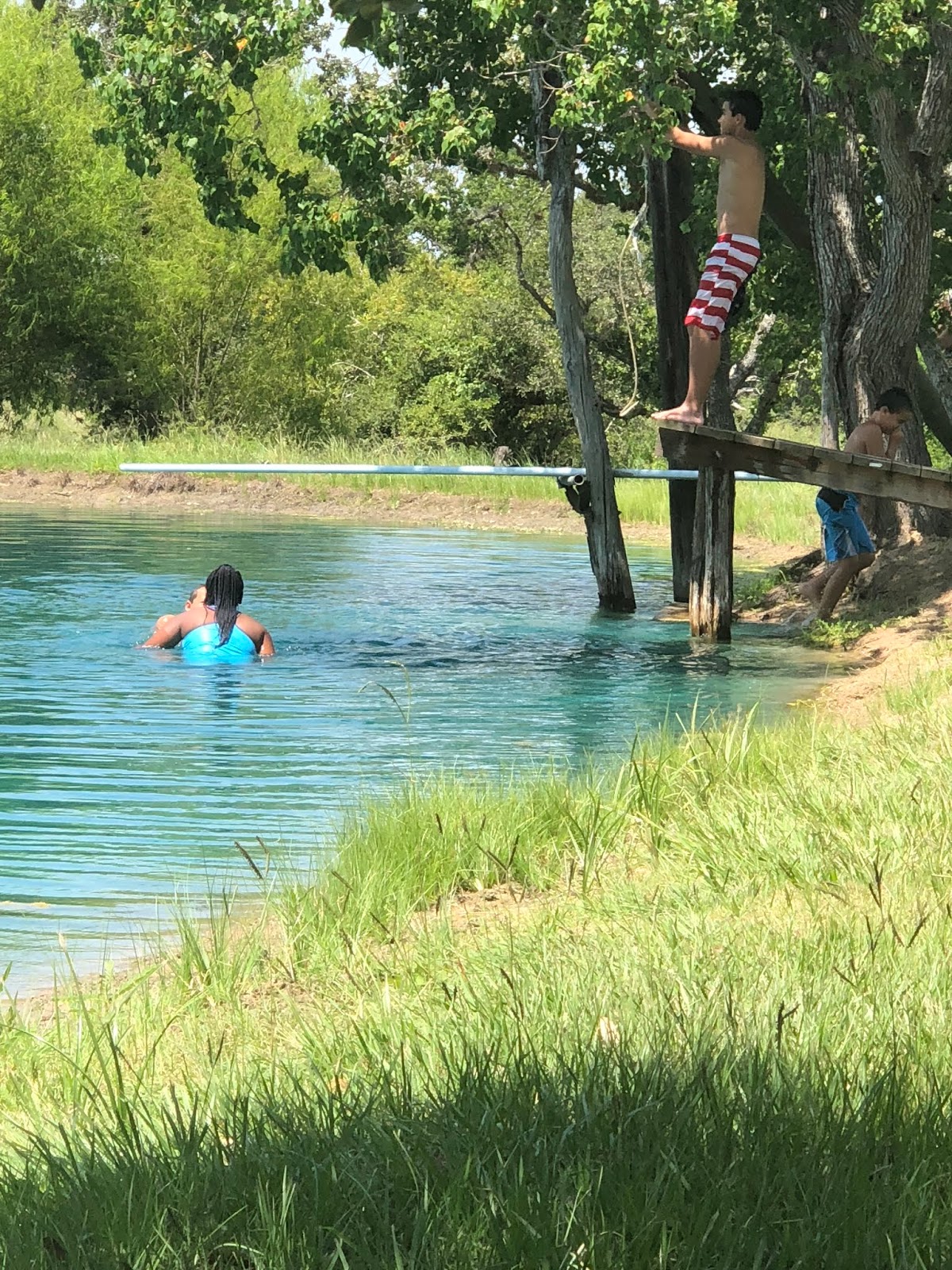 And like I hadn't sweated enough, we left there and went to a pond. I just thought I was hot. But the kids have had fun!